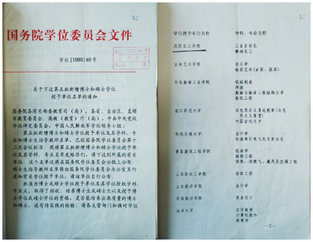 本时期,学校依托建校时的化工、机械、电机3个专业,坚守化工初心,承载时代使命,砥砺奋进前行。1982年,学校获批为国家首批学士学位授予权单位,为学科建设和发展奠定了坚实的基础。