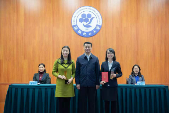 总结大会上,党委书记王强为获得一等奖的吴海迪老师颁发了奖牌和获奖证书,为国际教育学院颁发了“腾飞杯”奖杯。
