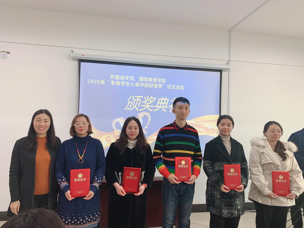 举办“争做学生心目中的好老师”征文活动。围绕“践行初心使命,潜心立德树人”,学院在11月份举办了2020年“争做学生心目中的好老师”征文活动,号召全院教师人人争做有理想信念、有道德情操、有扎实学识、有仁爱之心的党和人民满意的好老师,以良好的精神风貌迎接学校70周年校庆。学院教工积极参加,踊跃投稿。经过评委评审,共评出一等奖作品5篇,二等奖作品5篇,三等奖作品12篇。12月9日,学院在思远楼306举办了表彰大会,有22位教工受到了表彰。通过本次活动充分展现了学院教职工在“双一流”大学建设中爱岗敬业、诲人不倦、为人师表的精神风貌。