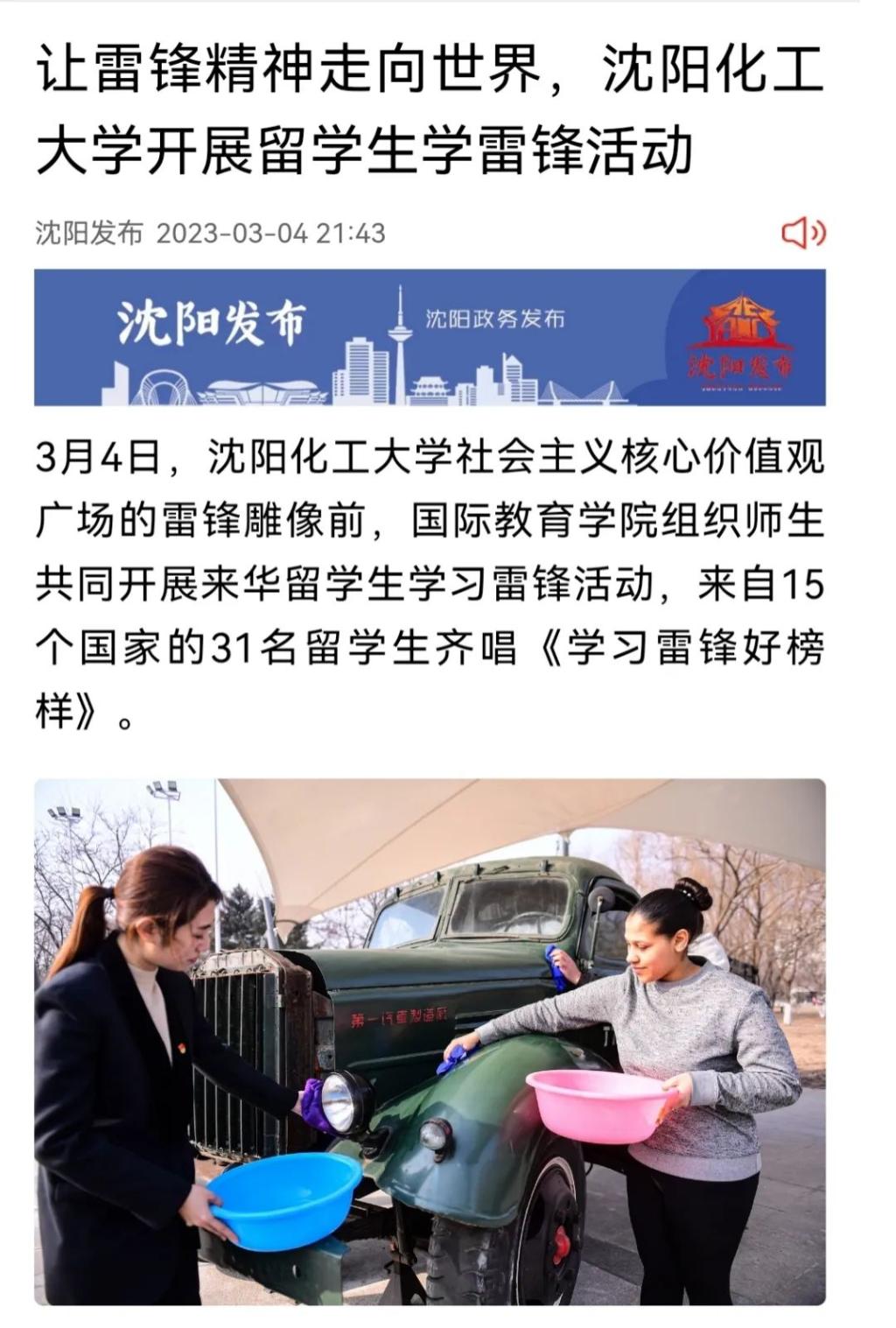 3月4日,沈阳日报全媒体以《让雷锋精神走向世界,BB贝博艾弗森官方网站开展留学生学雷锋活动》为题进行了报道。