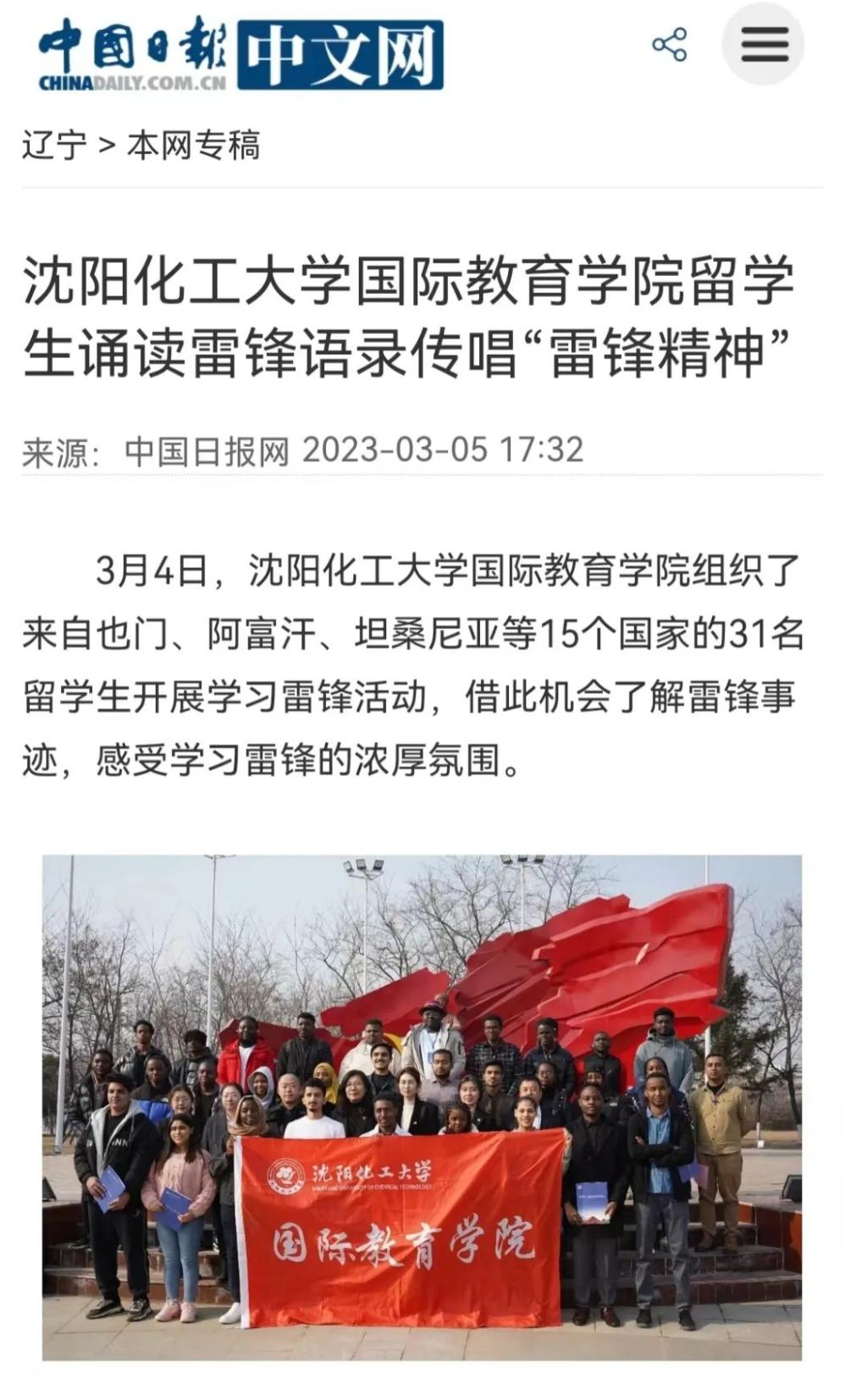 3月5日,辽宁日报“北国”客户端以《International Students Singing “Learn From Lei Feng, Our Great Example”》为题进行了报道。
