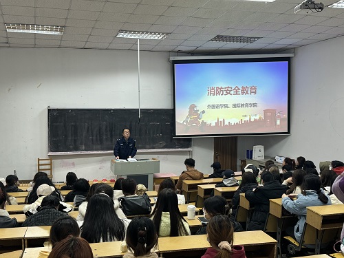 11月是全国“消防宣传月”,为使全体来华留学生了解消防基础知识,提高安全防范意识,增强自我保护能力,掌握对突发火灾的应变、逃生技能,确保师生生命安全及财产安全,国际教育学院联合外国语学院于11月22日在碧帆楼开展了主题为“预防为主 生命至上”的消防安全知识宣讲与消防应急演练活动。活动由保卫处消防科刘野老师主持开展。