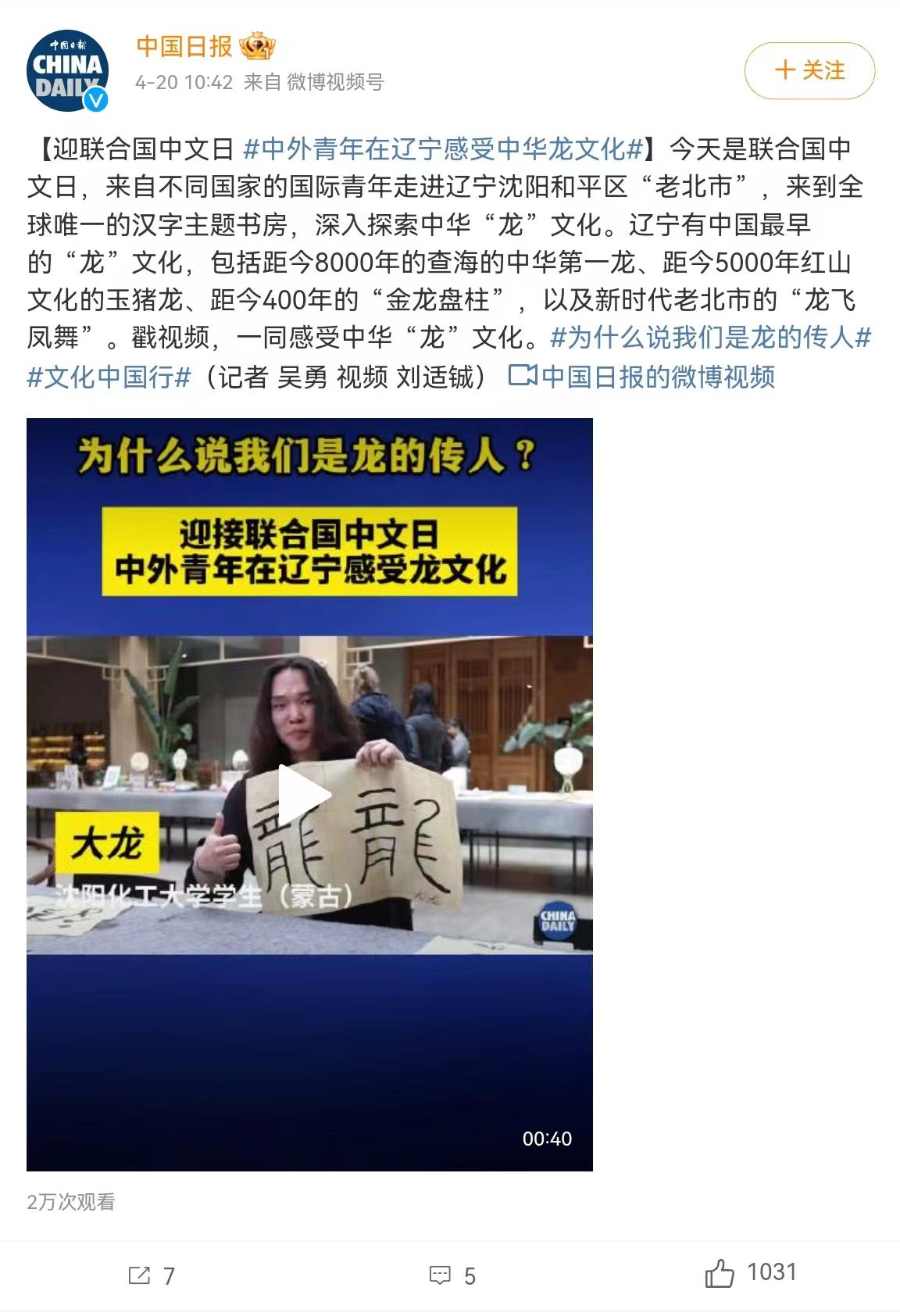 在第15个联合国中文日到来之际,贝博官网6名留学生宏伟(蒙古)、大龙(蒙古)、小音(蒙古)、李安娜(俄罗斯)、梅丽(吉尔吉斯斯坦)、白琳(泰国)走进辽宁沈阳和平区“老北市”,来到全球唯一的汉字主题书房,深入探索中华“龙”文化。活动报道在中国日报官方视频号、官方微博、抖音、快手等平台上发布,获得21世纪英文报官方视频号转载。