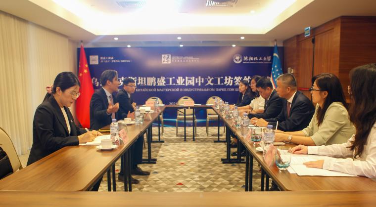 周志强在讲话中表示,近年来,沈化大积极拓展国际化办学空间和谋划“高教出海”,推动“中文工坊”成功落地乌兹别克斯坦鹏盛工业园,具有重要历史意义。学校将充分发挥学科优势和教学资源,积极做好“中文工坊”的建设与发展,为乌兹别克斯坦培养更多既掌握中文、了解中国文化,又通晓专业技术的国际化复合型技能人才,助力乌当地经济社会发展。