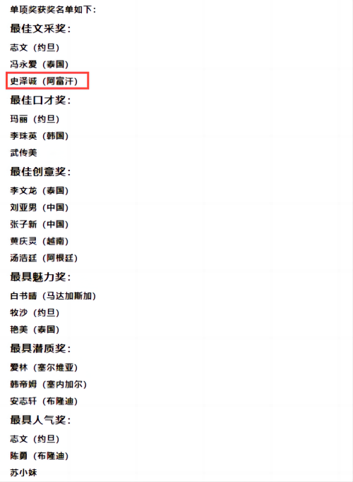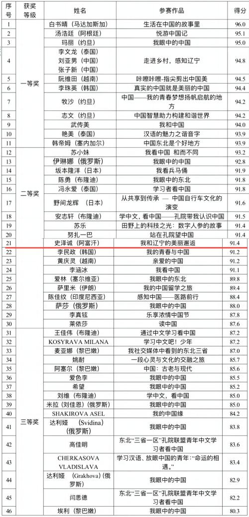 本次比赛为广大青年中文学习者提供弘扬中华优秀传统文化、与世界交流的平台,充分展示广大青年中文学习者传承和弘扬中华优秀传统文化的丰硕成果。大赛吸引了来自辽宁省、吉林省、黑龙江省和内蒙古自治区18-35周岁的众多中文学习者。最终,经评审专家审定,共评选出46份获奖作品以及20个单项奖,贝博官网阿富汗籍来华留学生史泽诚获得两项奖励。