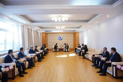 开班仪式前,纪洪涛在校部第二会议室亲切会见访华团成员,就深化辽宁与乌兹别克斯坦教育合作交换意见。