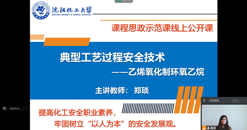 4月15日上午,校级课程思政示范课云端公开课第九讲精彩开讲。环境与安全工程学院郑琰老师结合《化工过程安全工程》课程进行课堂教学展示与课程思政经验分享。《化工过程安全工程》是BB贝博艾弗森官方网站首批课程思政示范课、校级一流本科课程,是贝博官网安全工程专业本科生的专业核心课。任课教师环境与安全工程学院郑琰老师热爱教学工作、认真履行教学责任,多年来扎根教学一线,致力于教学改革和课程建设,专注教学教研、潜心教书育人,并注重研究成果的推广与实践,课程建设及育人效果明显。