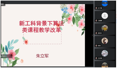 学院教师朱立军作课程改革经验介绍。他以新工科背景下算法类课程的教学改革、基于ACM/CPC模式的算法类课程实验平台的搭建、《程序设计竞赛》课程线上MOOC资源建设三个项目为例,针对教师课堂指导困难、学生上课兴趣不高等痛点,指出可采用线上线下相结合、分层开展教学、竞赛实验等方式,以培养学生的学习兴趣和解决实际工程问题的能力。