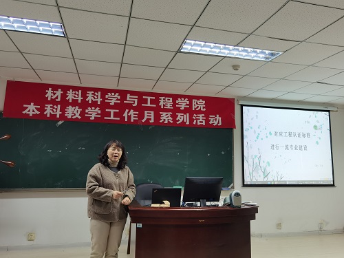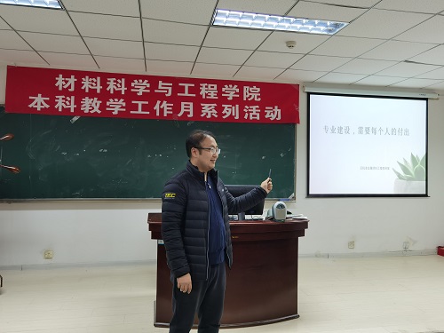 为全面落实新时代全国高等学校本科教育工作会议精神,进一步深化本科教育教学改革,强化内涵式发展,全面提高教育教学质量,坚持以本为本,推进四个回归,努力形成高水平人才培养体系。根据学校及学院“本科教学活动月”的总体安排,11月18日,材料科学与工程学院在以申报国家级一流专业为契机,组织全体教师开展了“一流专业建设”之教师的“责任·担当”主题研讨会。11月25日,学院举办“对标工程认证标准,建设一流专业”研讨会。会议由材料学院副院长于智主持,材料学院全院教师参加。