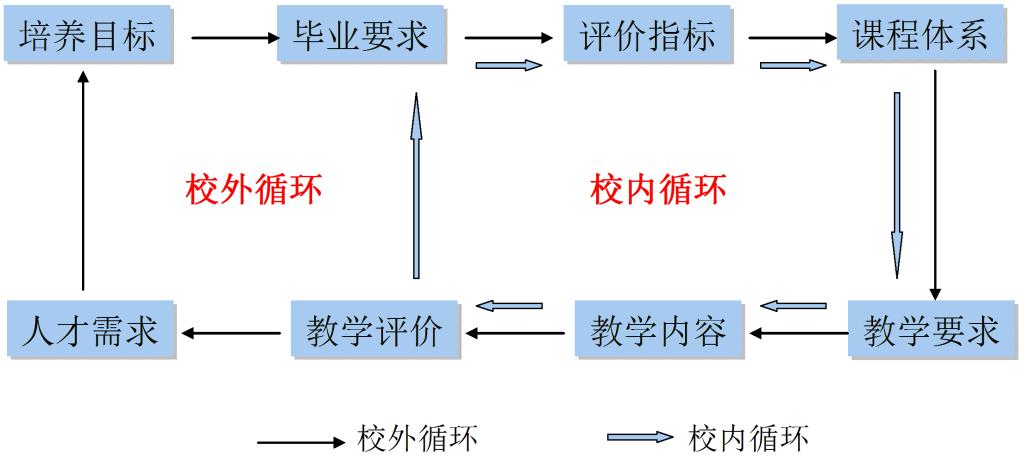 OBE理念由3个下位理念组成,即反向设计、以学生为中心和持续改进。反向设计是进行OBE教学设计必须遵循的一个核心理念,其要点是先确定培养需求,由培养需求决定培养目标,由培养目标决定毕业要求,由毕业要求决定课程体系。这就彻底颠覆了传统教学设计理念(称正向设计),即:先确定课程体系,由课程体系决定毕业要求,由毕业要求决定培养目标,由培养目标适应培养需求。反向设计正向实施,既是起点又是终点。也就是说我们培养的人起于供给侧终于供给侧,这就抓住了人才培养供给侧结构性改革的核心。“OBE”理念的第二个关键是以学生为中心,教学内容取决于学什么而不是教什么,教学方法取决于怎么学而不是怎么教,教学评价取决于学得怎么样而不是教的怎么样。“OBE”的第三个关键是持续改进,要为每个学生达到其学习目标建立合适的持续改进机制,强调只有不合适的教育,没有教不好的学生,这就是“OBE”理念,这一理念从培养目标与课程体系设计上保证供给侧和需求侧相符合。