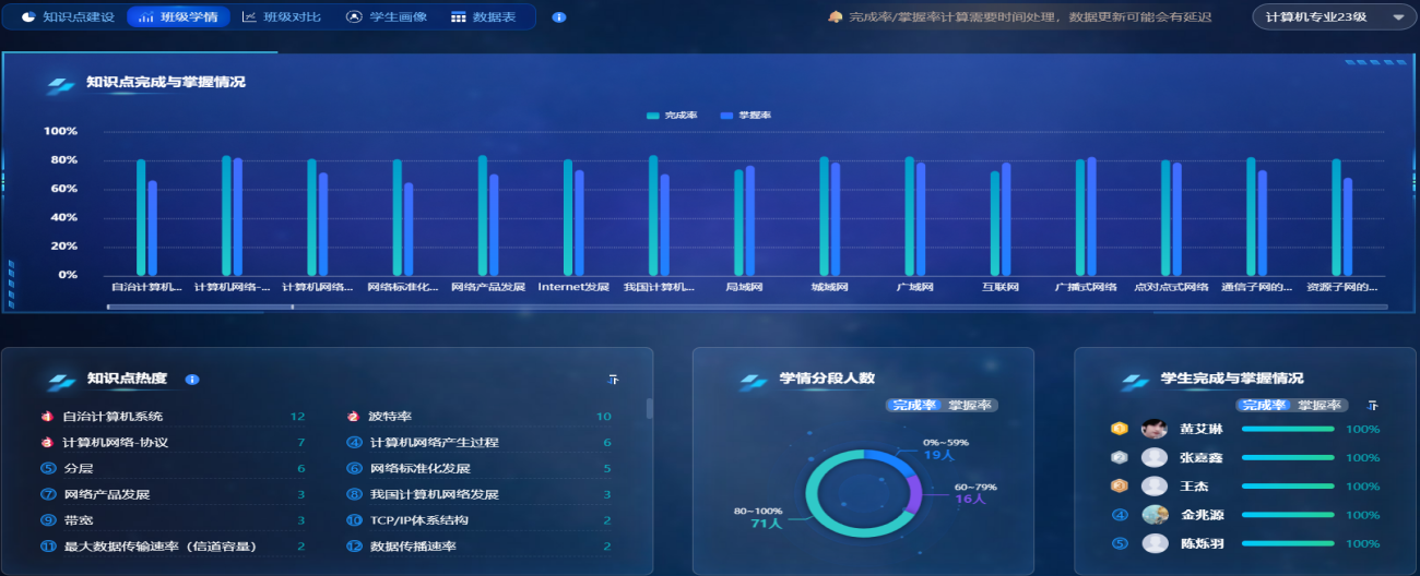 打破“理论抽象难理解、实验操作受局限、学情诊断不精准”的传统困境计算机科学与技术学院王军教授带领《计算机网络》国家一流课程团队进行智慧课程建设,构建起“AI 深度赋能-仿真平台支撑-数据精准驱动”的三维智能教学体系将人工智能技术全面融入教学全过程,推动课程从“知识传授”向“能力培育”的系统性跃迁。