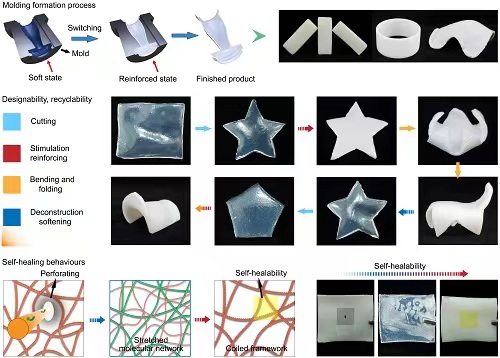 图4 创制材料的加工可设计、循环利用与自愈合特征功能(Advanced Materials,2107857)