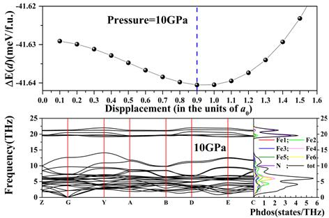 压力导致的铁磁性晶态合金的“软模相变”的实验研究很少有报道,主要原因在于:高压下非弹性中子散射实验或者拉曼散射实验测定整个布里渊区的声子谱具有困难,而且必须同时测定体系的磁性和晶体结构这就加大了实验的难度。而基于密度泛函理论的第一性原理可以计算体系在整个布里渊区上的声子谱,这为晶态物质的软模相变研究提供了计算技术。我们借鉴上述理论和计算技术处理了10GPa下的γˊ-Fe4N在M点处的声学支声子软化,发现了高压新相P2/m-Fe4N。