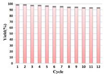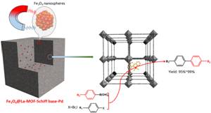 辽宁省无机分子基化学重点实验室的科研人员结合其在功能配合物及偶联反应催化剂方面的研究经验,以稀土-有机框架为载体,经磁性纳米粒子负载、席夫碱反应和钯的配位负载等步骤制备出可磁性回收、低钯负载量(ppm级)、钯单原子分散的催化剂,能高效地催化芳香硼酸酯与溴苯之间的偶联反应,几乎能够定量地得到产物(产率>99%),展现了异相催化偶联反应中最高的TON(21443)和TOF(42886 h-1)值。经外磁力分离催化剂后,至少可以重复使用12次而活性不下降。