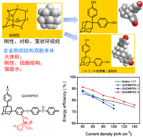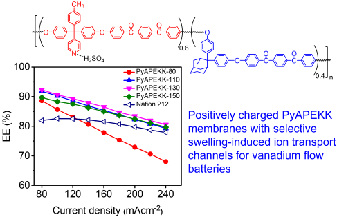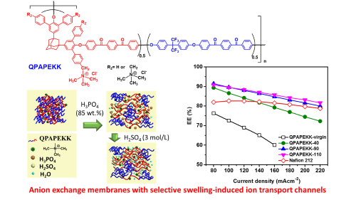 图3. 具有选择性溶胀诱导离子传输通道的含金刚烷结构聚芳醚膜