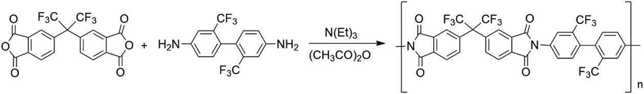 图4 含氟聚酰亚胺(PI)的制备工艺。