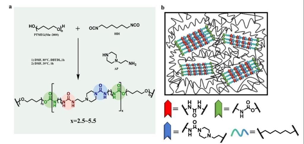 材料科学与工程学院王元霞副教授与清华大学化工系徐军副教授开展合作研究,自然界中蜘蛛丝、扇贝等启发,提出了一种调控多级氢键与硬段堆积的综合设计策略,制备了一种具有高强韧、抗损伤、抗冲击的聚氨酯/脲APPU弹性体。2025年4月30日,该工作以“Strong and Anti-impact Multi-functional Elastomer via Hierarchical Hydrogen Bonding Design”为题发表在Small上。文章的第一作者为BB贝博艾弗森官方网站硕士生王忠婷(清华大学化工系联合培养),清华大学化工系博士后史家昕、副教授徐军为论文通讯作者,BB贝博艾弗森官方网站王元霞副教授和清华大学化工系郭宝华教授为论文共同作者。沈阳化工大学为论文的第一单位。