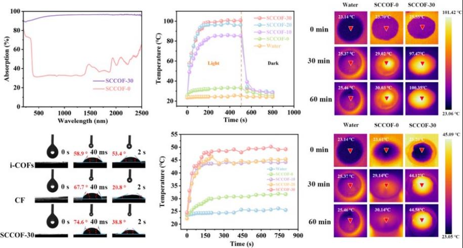 蒸发器光吸收、接触角及光热性能图