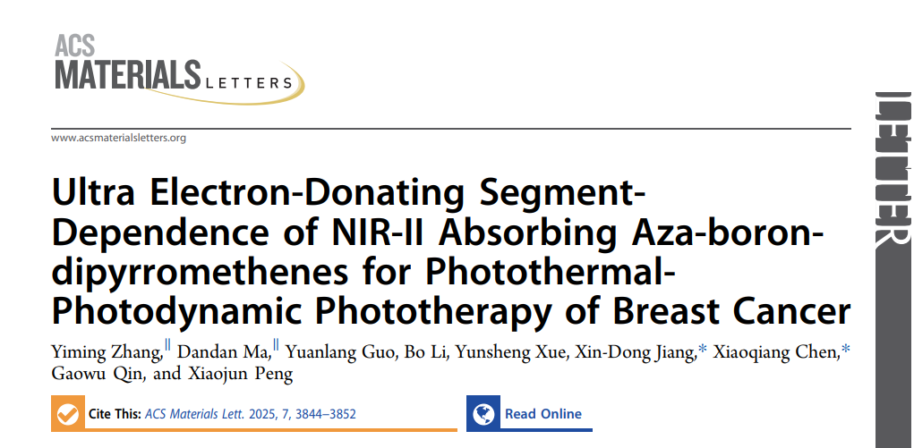 题目:Ultra Electron-Donating Segment-Dependence of NIR-II Absorbing Aza-boron-dipyrromethenes for Photothermal-Photodynamic Phototherapy of Breast Cancer