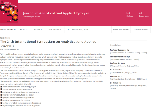 《Journal of Analytical and Applied Pyrolysis》出版Pyro2024特刊