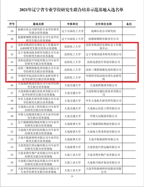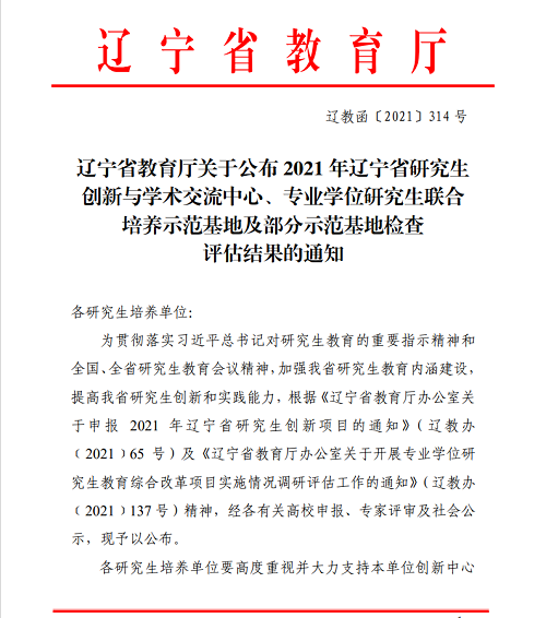 近日,辽宁省教育厅公布了2021年辽宁省研究生创新项目遴选结果。贝博官网与沈阳三聚凯特催化剂有限公司、沈阳迈思医疗科技有限公司、辽宁省视讯技术研究有限公司、中国科学院沈阳应用生态研究所、沈阳市铁西区乐和社会工作服务中心联合申报的5个专业学位研究生联合培养基地成功获批2021年辽宁省专业学位研究生联合培养示范基地。此次获批是贝博官网继去年计算机科学与技术学院与沈阳中科数控技术股份有限公司研究生联合培养基地获批辽宁省专业学位研究生联合培养示范基地的又一重大突破。