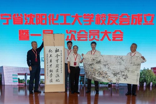 在校友会成立之际,各地校友组织纷纷发来祝福与祝贺。葫芦岛校友会和大连校友会作为地方校友组织代表在大会现场向校友会赠送书画作品以示祝贺,新当选会长杨学印代表校友会接受作品。