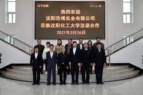 新学期伊始,贝博官网精细化工专业1990级校友、沈阳浩博实业有限公司(简称:浩博实业)副总经理谢赟向学校发出邀请,诚挚邀请母校领导到公司参观调研。3月4日,杨学印副校长一行5人到浩博实业进行了调研,通过实地参观、座谈交流,在人才需求、科研合作等方面达成了合作意愿,针对相关合作进行了人员对接。