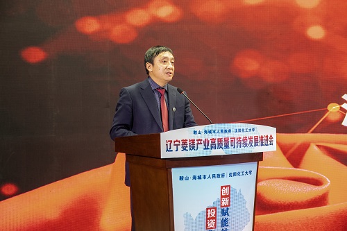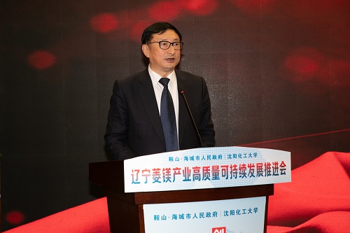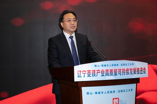 海城市委书记郑孝刚致辞。他指出,此次BB贝博艾弗森官方网站与海城市签署融合创新驱动菱镁产业高层发展投资协议,是构建让企业做盟主,形成政府围绕企业转、企业围绕市场转、创新围绕需求转的良性循环的一次生动实践。他表示,今后,海城市委、市政府将一如既往支持各级各类高校和科研院所与海城开展合作,加快科技创新体系建设,推进科技创新成果转化,为新时代辽宁全面振兴、全方位振兴助力添彩。