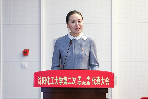 纪委书记孟宪梅作讲话。她首先代表学校对大会的召开表示热烈的祝贺,向长期以来关心和支持学校学生会、研究生会工作的上级团组织、学联组织表示衷心的感谢。她充分肯定了一年来校团委在指导疫情防控、学生组织改革等方面工作取得的良好成效,高度赞扬了学生会、研究生会在助力化大青年思想引领、学习生活、成长成才、权益维护等方面发挥的积极作用。她指出,学校一直坚持党建引领,落实立德树人根本任务,顶层设计构建了德专情形创的人才培养目标和五育并举的人才培养体系,为把化大学子培养成为德智体美劳全面发展的社会主义建设者和接班人,凝心聚力、改革创新,取得显著成效,开创了高质量发展的新局面。同时,她向全校学生会、研究生会及全体青年学生提出了三点殷切希望:一要刻苦学习、艰苦奋斗,做追求卓越的化大人;二要热爱母校、贡献母校,做爱校荣校的化大人;三要志存高远,坚定信念,做心怀家国的化大人。她号召化大青年要与祖国共奋进、与时代同步伐、与学校齐发展,努力创造出无愧于时代,无愧于青春的光辉业绩。