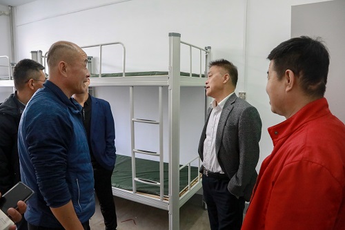后勤与基建管理处领导向金志浩副校长介绍了新生宿舍的准备情况。金志浩副校长仔细检查宿舍的卫生环境及床铺、桌椅等设施的情况,对存在的不足之处提出整改意见。他强调,要切实落实学校“学生第一、教师优先”的育人理念,对存在的问题立即整改、彻底整改,务必要给新生提供一个舒适整洁的居住环境。