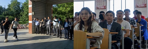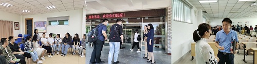 清晨7时40分,校领导分别来到各个教学楼前迎接慰问前来上课的师生,为师生送上新学期的问候。随后,校领导走进教室,实地查看新学期教学工作和防疫措施的准备、开展情况,并和师生一同上课。