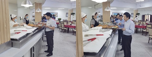 听课前,校领导来到升级改造后的教工食堂视察,并与教师们共进早餐。