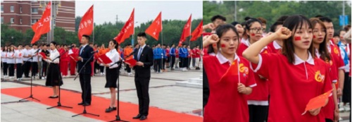 青年师生代表以《我们承诺,用青春告白祖国》为题作国旗下演讲。全体青年学生高举右手,面向国旗庄重宣誓,以响亮的声音表达了化大青年学子共同为学校改革发展、为中华民族伟大复兴贡献青春力量的坚定决心。