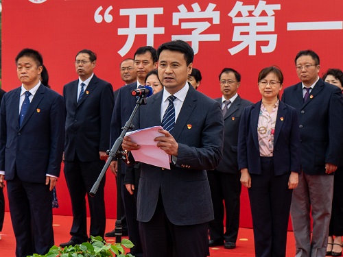 党委书记王强为在场师生讲授了 “开学第一课”。王强书记指出,突如其来的疫情让我们比以往更加深刻地感受到中国力量、中国精神、中国效率,更加坚定地拥有民族自豪感、自信心、凝聚力,更加热爱生命、珍惜时光、珍视彼此,并号召全体化大人以这场特殊的升旗仪式,向奋战在抗击疫情一线的医务人员和志愿者们致敬!向英雄的人民致敬!向伟大的祖国致敬!王强书记对青年学生提出四点希望:一要培养勇于担当的精神,努力做到品德高尚,成为新时代的奋斗者。要艰苦奋斗,自强不息,以实现中华民族伟大复兴为己任,始终保持奋斗状态。二要拥有立志拼搏的理想,努力做到强于实践、勇于创新,成为新时代的领跑者。要在创新创造创业的伟大实践中实现自身价值,始终保持拼搏姿态。三要厚植爱校爱国的情怀,努力做到情商出众,成为新时代的圆梦者。要与时代同步伐、与人民共命运、与祖国心连心,始终保持积极心态。四要增强成长成才的紧迫感,努力做到专业过硬,成为新时代的求知者。要以时不我待、只争朝夕的精神抓紧一切时间去学习,求知善读、永不懈怠,始终保持进取精神,以青春力量去创造青春之化大、青春之民族、青春之中华。