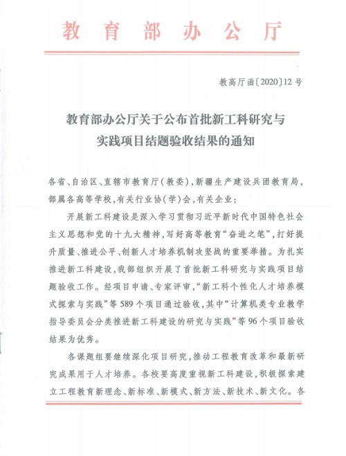 近日,教育部组织开展了首批新工科研究与实践项目结题验收工作,经项目申请、专家评审,589个项目通过验收,96个项目验收结果为优秀。贝博官网承担完成的“新理念、新模式、新机制:新工科创新型人才培养体系研究与实践(项目主持人:李志义教授)”项目以“优秀”成绩通过结题验收。