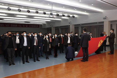 最后,在党委组织部部长侯延风的领誓下,新提任中层干部重温入党誓词,并面对党旗庄重宣誓。