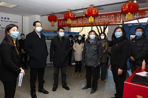 2月26日下午,辽宁省副省长、省委教育工委副书记、省委教育工委疫情防控工作领导小组组长王明玉一行来校检查指导疫情防控工作。