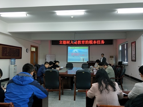 金志浩副校长的党课主要分为三个部分:一是加强思政教育,完成立德树人是教育的根本任务。阐述了高校的建设和发展必须思考和回答:培养什么样的人、如何培养人、为谁培养人的问题。高校要培养社会主义合格建设者和可靠接班人。思想政治教育是高校教育的“第一课程”。教育的根本任务是立德树人。二是正确把握“课程思政”和 “思政课程”的关系,即角色迥异、方式有别、职能不同、功能归一。三是加强政治理论学习发挥“课程思政”育人优势。高校教师要认真学习和深刻领会习近平新时代中国特色社会主义思想,精通社会主义核心价值观,提炼思想政治教育元素,转化为丰富的德育教学资源,融入到课程中。利用课程中所蕴含的丰富的德育资源开展道德教育,潜移默化地影响学生的思想、行为和价值选择,达到育人目的。