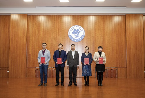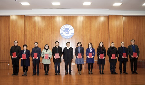 副校长笪可宁宣读了《关于表彰2018年毕业生就业创业工作先进集体、先进个人的决定》。校党委书记王强,副校长金志浩、杨学印为毕业生就业创业工作先进集体代表、先进个人代表颁发奖状。