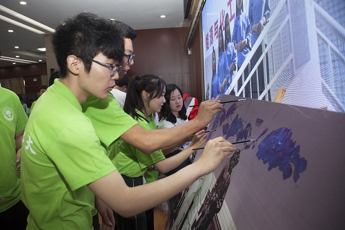开笔仪式结束后,“印象化大—把最美的一笔留给母校”活动正式开始,毕业生代表们纷纷上台在画板上画下自己最美的一笔。