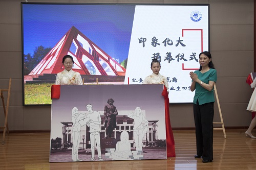 孟宪梅书记为“2019届毕业生回馈母校纪念品”揭幕。