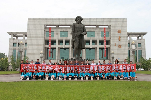 报告会后,专家一行在贝博官网图书馆门捷列夫雕像前合影留念。
