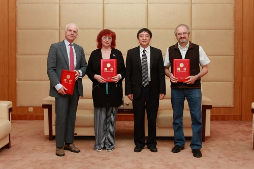 许光文校长为瓦里安教授、米罗诺夫教授、马拉佐娃教授颁发了客座教授聘书。