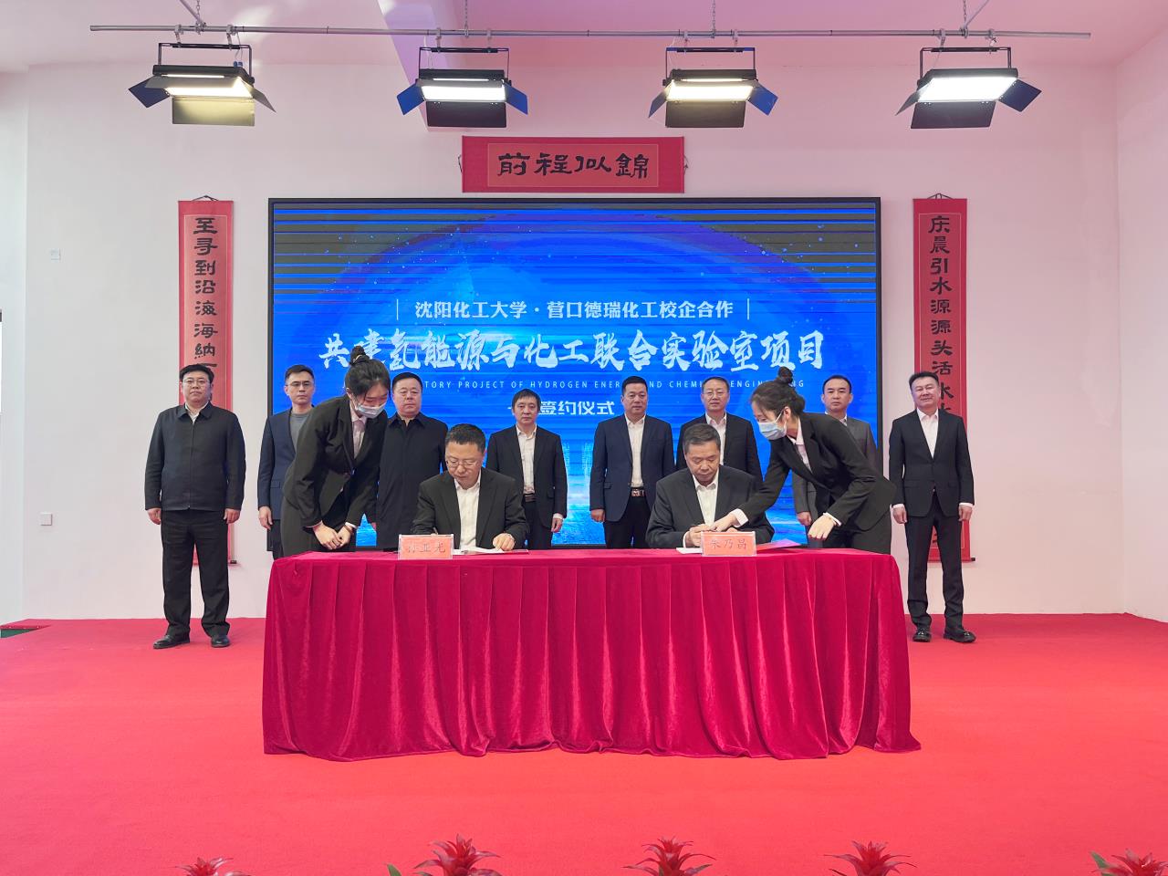 2月6日上午,贝博官网与营口德瑞化工有限公司就共建“氢能源与化工联合实验室”举行签约仪式。校长许光文、副校长孙亚光,营口市委常委、副市长何庆伟,站前区委书记王正刚,站前区委副书记、区长黄宇光等领导参加签约仪式。