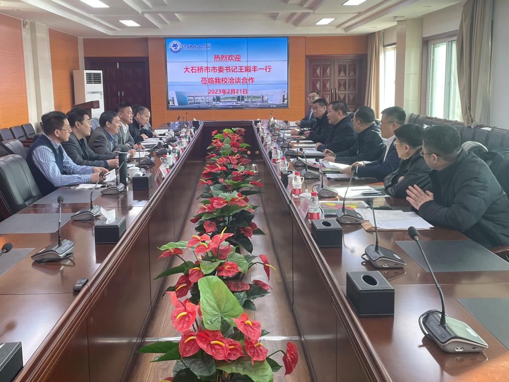 2月21日下午3点30分,贝博官网在校部第八会议室召开与菱镁产业学院合作会谈会。大石桥市委书记王殿丰,南楼开发区主任王昌阳,市委常委、副市长张雨,南楼开发区副主任杨禹及教育局、工信局、自然资源局负责人,贝博官网校长许光文、副校长金志浩,党委统战部、教务处、招生与就业工作处负责人参加会议。