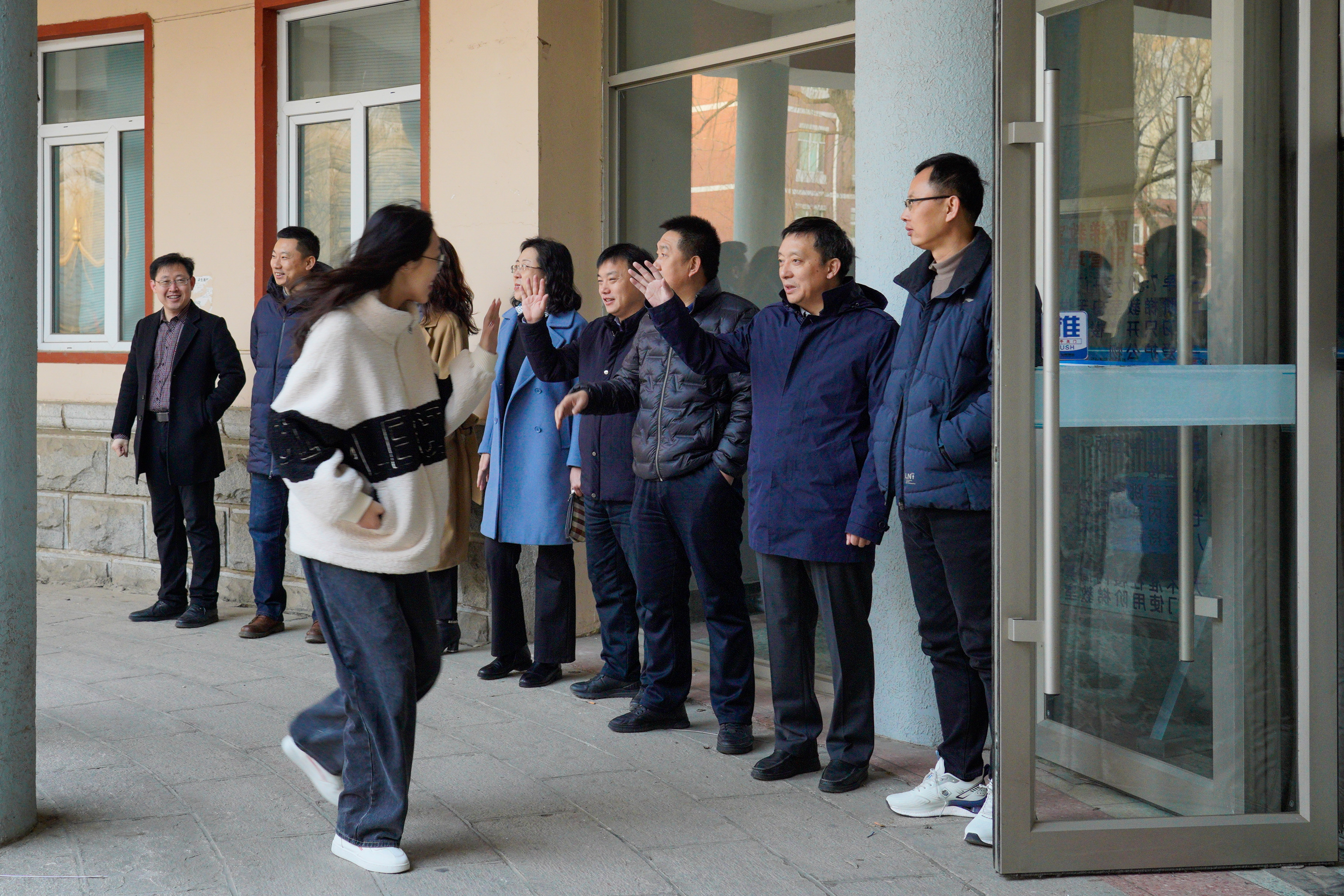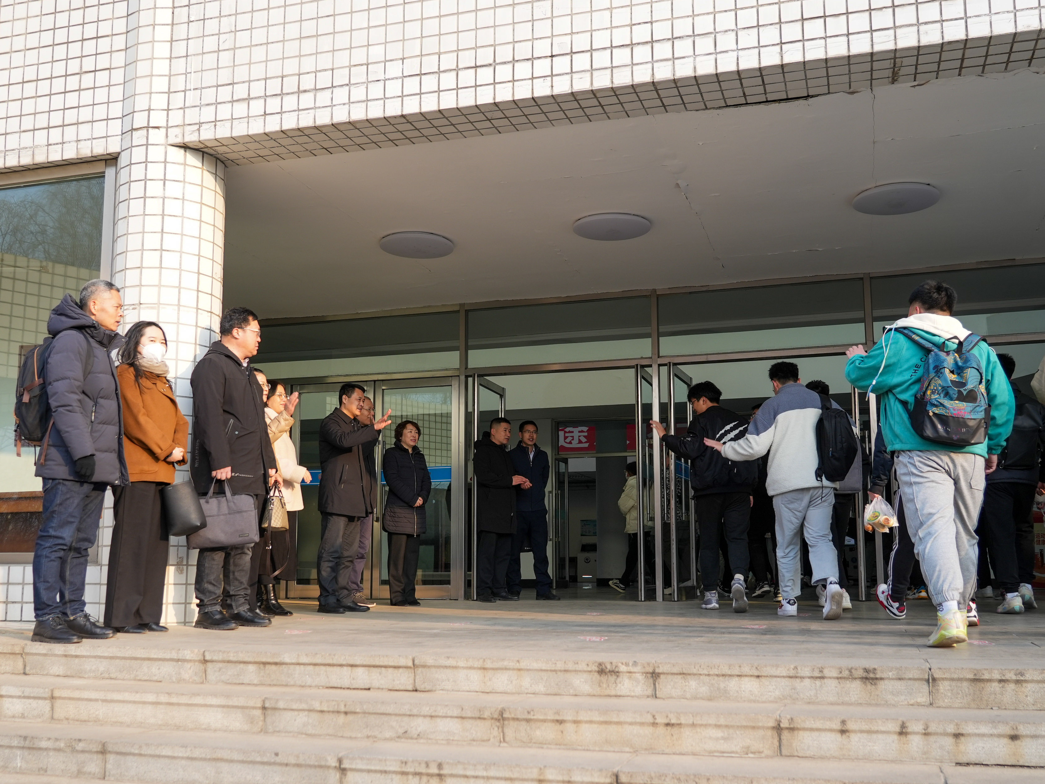 清晨7时40分,校领导们分别来到应星楼、碧帆楼、敬仲楼、通明楼、思远楼、景唐楼和瑞师楼等教学楼前迎接慰问前来上课的师生,给师生们送上新学期的第一声问候。校领导们不断地向前来上课的学生们挥手致意并高声问候:“同学们好!”来上课的学生们都精神饱满、脸上洋溢着返回校园,重见教师与同学的喜悦与兴奋,也纷纷向校领导及陪同的领导、老师们问候:“老师好!”。