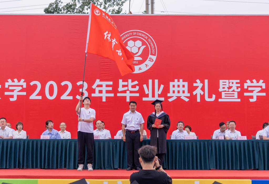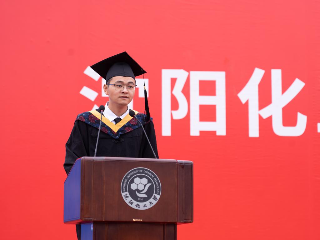 2023届本科生代表张金鹏、研究生代表何佳芮、留学生代表王娜代表毕业生发言。他们感恩父母的培育,感谢母校和老师的培养,感怀在化大收获的成长和情谊。他们代表所有毕业生郑重向母校表态,将带着母校给予“化大人”的底气,不负“化大人”的时代使命,续写“化大人”青春奋斗的新篇章!