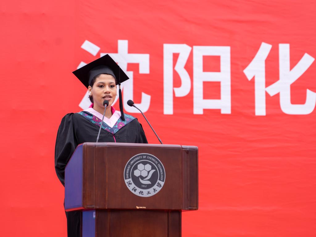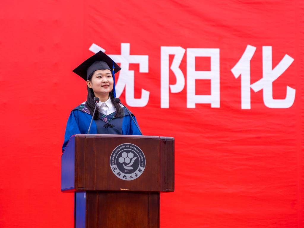 材料科学与工程学院院长王娜作为教师代表发言。她给毕业生们提出“五色”希望。红色,涵养家国情怀;绿色,坚持强健体魄;橙色,永远保持好奇;蓝色,拥有健康心态;金色,不断奋斗进取。她表示,化大永远是所有毕业生的坚实后盾和精神家园,将化作“五彩祥云”,助力广大毕业生在实现中华民族伟大复兴的新长征路上奋勇搏击。她希望所有毕业生以不负青春的志气、不负时代的底气,发出“强国有我”的时代强音,努力成为母校建设“五彩化大”新征程上的参与者。