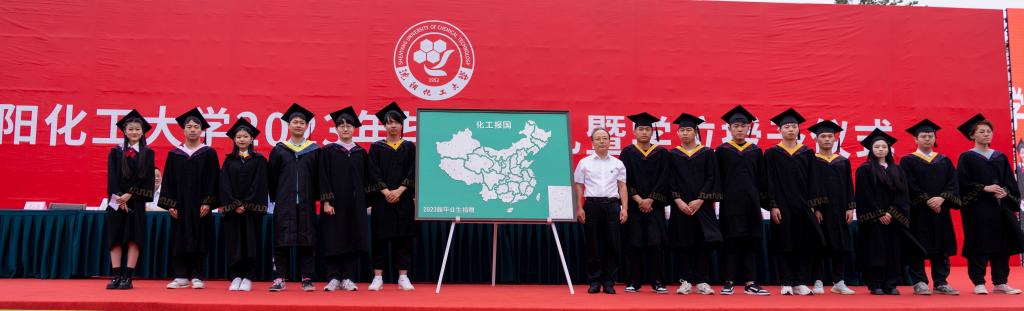 副校长杨学印代表学校接受了毕业生献礼。毕业生们赠予母校一组由“家在化大”和“化工报国”组成的微景观,表达了莘莘学子对母校的感恩之情,将带着化大的骄傲与荣光,奔赴祖国的山川大地,践行“化工报国”的初心和使命。