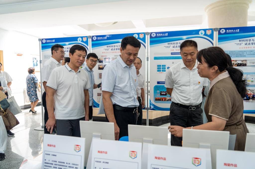 会后,校党委书记王强与部分校领导、参会教师共同参观了成果展,系统了解了“113”试点学院人才培养教育改革工作、非试点学院教学成果、教学案例,以及项目教学的学生作品。王强对学校“113”试点学院建设和取得成果给予了高度评价和充分肯定,并提出殷切希望。一是要继续秉承“化大光荣传统”和“新时代化大精神”,艰苦奋斗、守正创新,在113人才培养改革中持续发力,将试点学院成果逐渐在全校推广。二是要牢记“为党育人、为国育才”的初心使命,不断释放教学单位的办学活力和效能,提升人才培养质量,为辽宁全面振兴新突破三年行动提供智力支撑。三是要抓牢“德专情行创”,努力建设“五彩化大”,为学校“双一流”建设、实现腾飞发展的强校之梦贡献力量。
